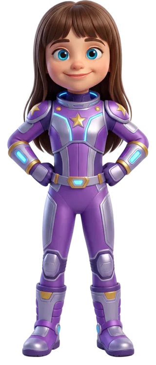 Indie is nine years old and absolutely brilliant. She's a star at gymnastics - fearless on the beam and graceful in everything she does. She's super smart, loves school, and reads everything she can get her hands on. She's beautiful inside and out, with the kind of confidence that lights up a room. When we told her she could be the hero of her own story, her eyes went wide. When we told her she could also be the villain, she couldn't stop laughing.