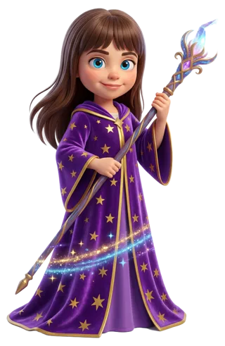 Pick from dozens of magical scenes, add villains, superpowers, plot twists, and even magic words that must appear in the story.